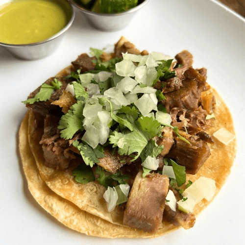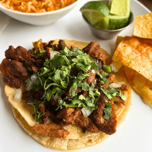 Pork marinated in lime, orange juice and garlic and fried until tender. Served on corn tortillas with cilantro and onion