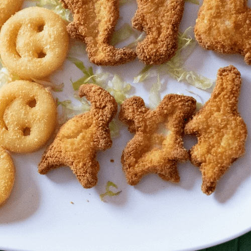 Served with smiley face potatoes